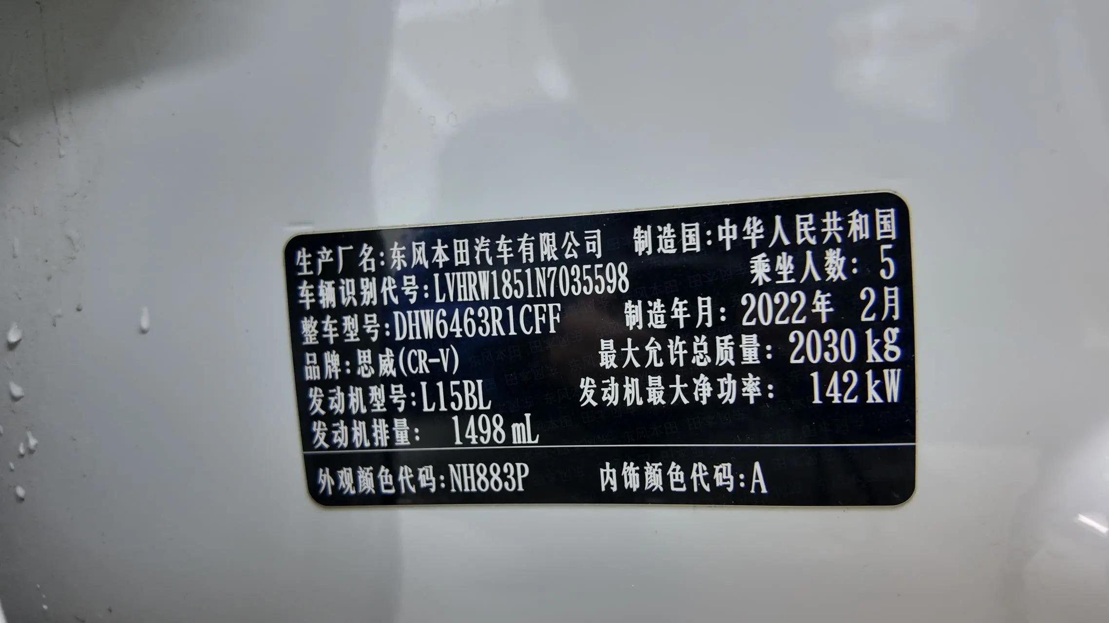 Honda CR-V 2022 г. 49126 км. 1.5 4WD CVT (192 л.с.) вариатор — под заказ из Китая