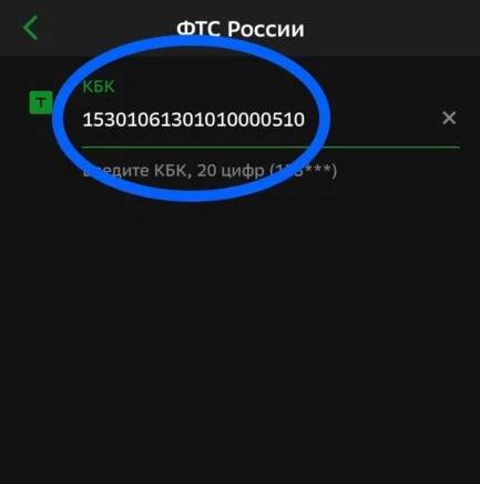 Введите КБК (Код бюджетной классификации) Федеральной таможенной службы: 15301061301010000510.